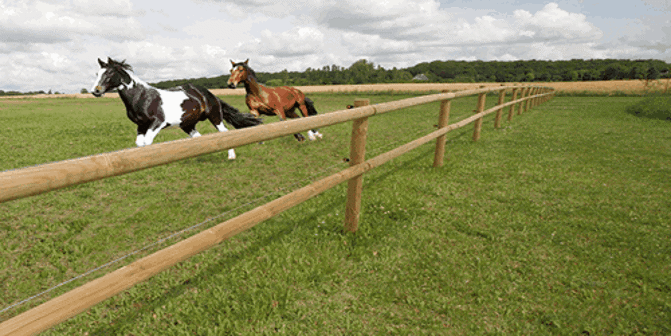 Ein solider Riegel-/Latten-/Plankenzaun ist der Grundstein für eine schöne und sichere Pferdekoppel, die viele Jahre lang halten soll. Ein solcher Zaun bildet eine physische Barriere und ist für die Pferde gut sichtbar.