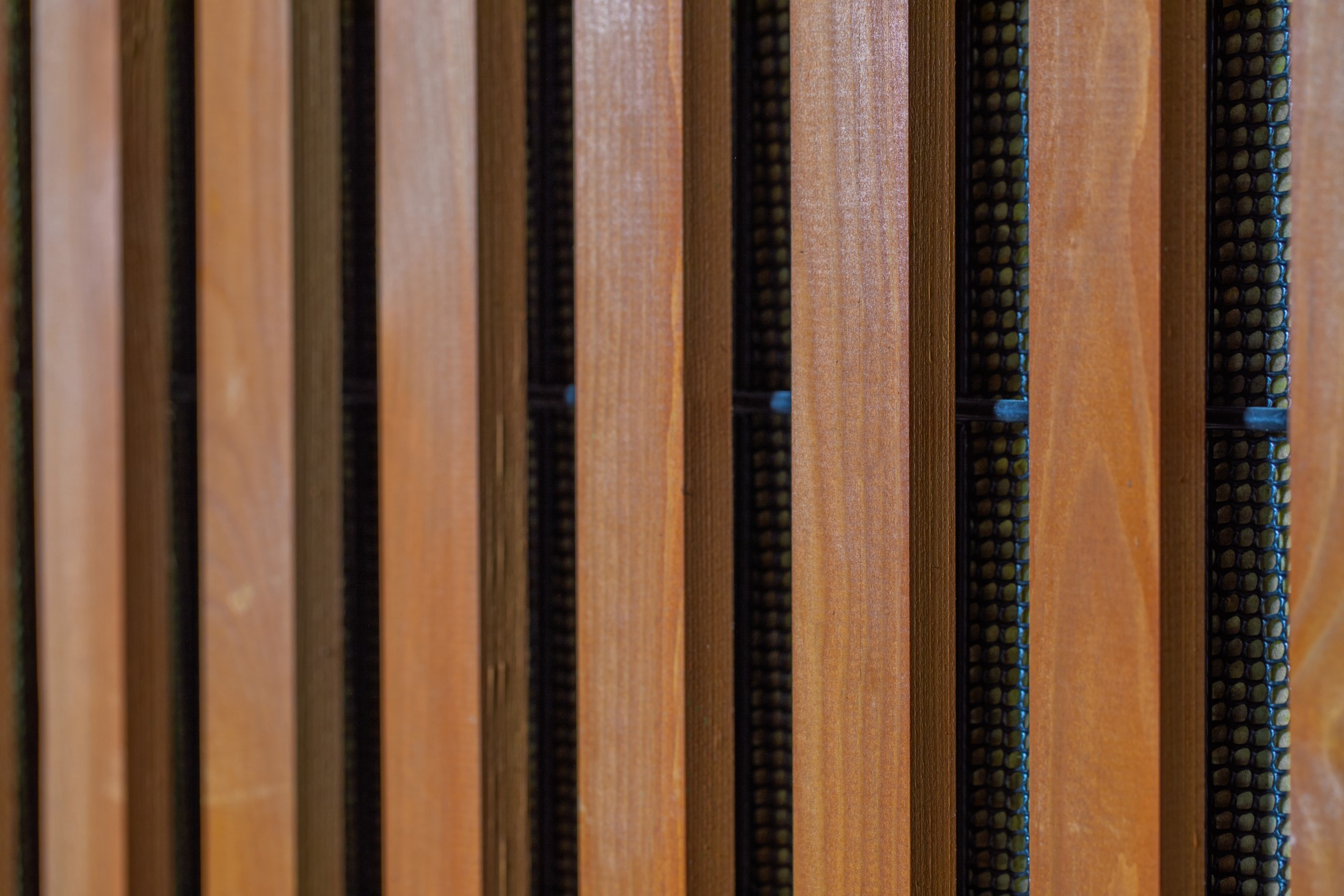 Lärmschutzzaun mit Kern und schallabsorbierendem Material aus ROCKWOOL®-Steinwolle, überzogen mit PE-Netz.