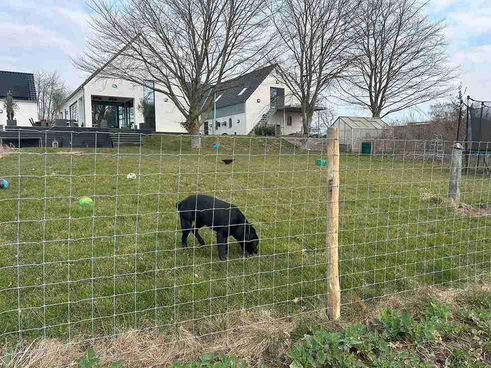 Wenn Sie besonders lebhafte Hunde haben, die den Zaun stark beanspruchen, empfehlen wir die Einzäunung mit dem extra starken und feinmaschigen Poda Multinet®. Im Gegensatz zu geschweißten Drahtzäunen sind alle Drahtkreuze mit einem stabilen Knoten verbunden, sodass er wirklich hält!